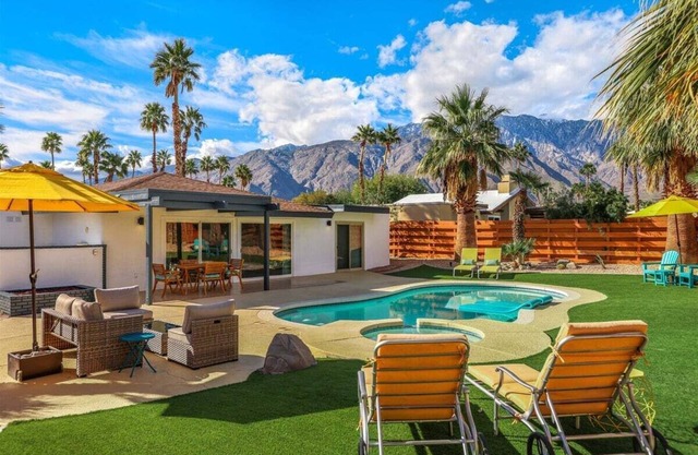 - Retro Retreat! Midcentury! 3 Masters! Pool! Spa! Mtn Views! Walk to Downtown PS!
