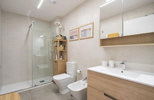 While you're here, you can enjoy all the comforts of home and more, including WiFi and a bidet, as well as heating and an ironing board. Other amenities include towels, soap, toilet paper, and a hair dryer.