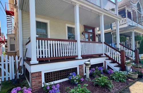 This is a perfect retreat to make your summer get away one for the books! 1.5 blocks to the beach and boardwalk. Boasting a covered front porch with AC! This most charming spacious apartment is fully furnished including , 1.5 roomy bathrooms, full kitchen, living room with a brand new queen sleeper sofa, with as well as a central living room with a tv. With amenities such as AC, WiFi, washer dryer, you have the perfect retreat for unwinding after a day of beaching or exploring. Centrally located to the beautiful, historic town of Ocean Grove, and a short walk into Asbury Park!