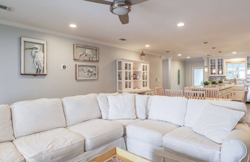 The rear deck is expansive with unobstructed views of the spectacular Mississippi Sound and right out the front, Horn Island. The deck has room to sit for that morning coffee and to lay out and catch some sun. You will see lots of birds (eagles, pelicans, cardinals, bluejays), many fish and dolphins passing by. The views are priceless and we know this will be one of your favorite places to be.