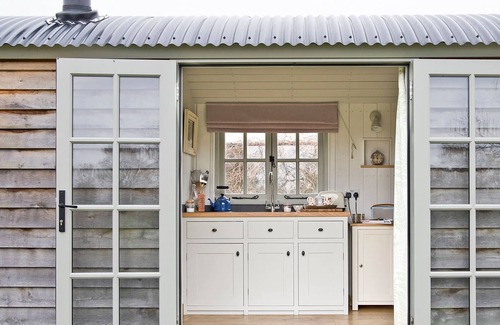 Bathroom 1: Cubicle Shower, Heated Towel Rail, Toilet. Heating, electricity, bed linen and towels included. Welcome pack. Patio with garden furniture and fire pit. Private parking for 2 cars. No smoking.. The Parlour is a lovely, completely self-contained luxury shepherd’s hut offering guests a fitted kitchen, shower room, a double bed, and dining area. There’s a radio, but no TV or Wi-Fi. You won’t need it though with so much beautiful countryside around you to explore. It’s a chance to get off-grid and leave your hectic life behind for a few days.