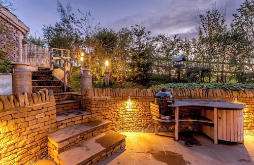 Shower Room: Cubicle Shower, Toilet. Gas central heating, electricity, bed linen, towels and superfast Wi-Fi included. Travel cot and highchair. Enclosed garden with patio, garden furniture, Kamado oven and barbecue. Wood-fired hot tub (Private). Private parking for 1 car. No smoking.. The lodge is filled with a variety of extras including a gorgeous wood-fired hot tub will hilltop views, and makes the perfect retreat for a romantic getaway, or a small family escape.This is a secluded wooden cabin that allows for stargazing on clear nights from both the terraces, garden and hot tub. The icing on the cake is that you can also stargaze from the comfort of the bedroom. The property has been handcrafted with amazing ingenuity, creating a truly unique space. Every detail has been carefully considered from the individually crafted features to the stunning private grounds. This really is a special place to get away from it all. Although the site has its own private car park nearby, the lodge has no adjoining roads, which creates a real sense of seclusion. The lodge is filled with a variety of extras including a gorgeous wood-fired hot tub with hilltop views, sauna and outdoor cold shower.