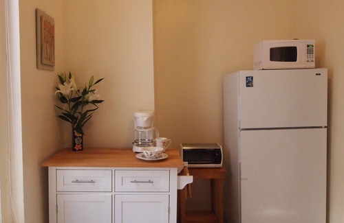 The apartment is cheerfully decorated and is a peaceful retreat from the bustle of big city life. It is newly furnished, freshly painted and is equipped with everything you could need to feel at home. It has beautiful hard-wood floors throughout and provides all the amenities (flat-screen HDTV, cable, wifi, air conditioning). The apartment comfortably accommodates 4 people, with a queen-size bed in the bedroom and a full-size pull-out sofa bed in the living room. Whip up a home-cooked meal in the fully-stocked and roomy kitchen (oven, range, microwave, coffee maker, toaster oven, pots, pans, plates, etc). Note that the apartment is located on the 2nd floor of a walk-up building (no elevator). Bedding, linens and towels are provided.