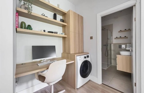 The apartment benefits from a modern and bright open plan kitchen and living room, eating space and bespoke 'study pod' desk area, the perfect workspace.