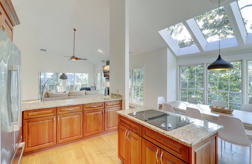 So close to the beach, you can practically hear the rhythm of the waves as you take in the soothing ocean views from the expansive balconies off both the first and second levels of this Sea Pines stunner. Below is plenty of room to stretch out, unwind, and enjoy the sunshine around the private pool. Inside, you’ll find a wide-open living space with tons of light flooding in through oversized windows and skylights. Also, for guests' convenience, an Electric Vehicle Charger is available for guests use.