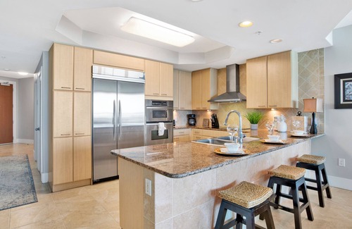 You will find that our condo is one of the most updated units in the building as it was just updated and remodeled. It has new paint and all new furniture throughout the entire space so it is like a brand new condo. The condo is a spacious 3 bedroom 3 bath 1976 square foot unit with a panoramic location with an extensive balcony providing the amazing direct bay views. The unit 9 foot ceilings, upscale fixtures and appliances, carpet in the bedrooms, and tile everywhere else. The décor is gorgeous and you will love all of the brand new furniture throughout the condo!