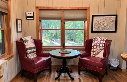 Curvy drive up the mountain to the cabin is worth the view. Inside Shallow Valley community where you might see two vehicles per day. In other words, it's quiet except for chirping birds and occasional breezes through the trees.
