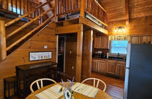Miss Bees Haven provides a sweet retreat for those who wish to get away from the hustle & bustle of life to relax. You'll find a peaceful front porch, where you can sit back & enjoy a cup of coffee in the morning while viewing the fall foliage that surrounds this cabin in the woods.