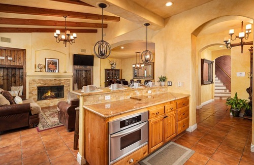 Welcome to a captivating Tuscan inspired retreat in Temecula Wine County. The expansive open-concept layout is perfect for group gatherings. Rich wooden accents contrast beautifully with light furniture, while golden tones throughout create a warm, sunlit ambiance reminiscent of a villa in the Italian countryside.