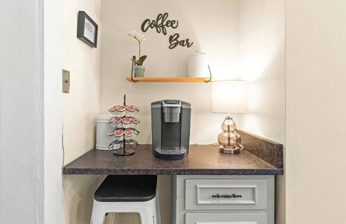 The Ellison House has 2 levels of living spaces. The upstairs and the downstairs studio. You can get to the downstairs studio 2 ways. You can enter from the driveway and through the gate, or you can enter from the gate in the backyard. With either entrance you will see an outdoor space with a table and chairs. Closer to the picket fence you have 2 Adirondack chairs to relax and take in the view. Follow the sign to "Home Sweet Home" where you will see the front door to the studio. You will be given the code for this door as well. In the lobby you will have another washer and dryer. Once inside you will see the kitchen. It is not a full kitchen however offers great space and amenities to cook more simple meals. There is also a full bathroom. Once you go through the kitchen you will see the open space of the living area. The living area includes a couch and 40 inch TV with Roku. The TV is set on guest mode so you can use your own login information and once your reservation is complete, your information is deleted. There is a table for 2 which can be used for dining or a work space. The living area includes a Queen bed with a 32 inch TV with Roku.