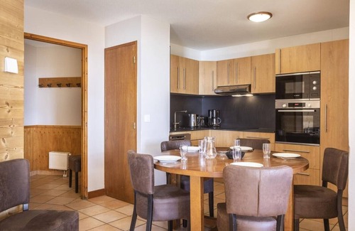 On a south facing piste with a clear view of the valley of Belleville, Les Balcons de Val Thorens****, Alps, France offer luxury and relaxing apartments in a quiet environment. The style of these spacious and comfortable wooden accommodations in Val Thorens, Alps, France with furniture made in the Savoyard tradition and sunny balconies give a feeling of warmth and wellbeing. After a busy day skiing keep warm in the cosy lounge by the wood stove (from 6/9 people accommodations) and take advantage of the balnèo bathtub. Access included: indoor heated swimming pool, whirlpool bath, sauna, hammam and fitness area. Surface area : about 60 m². Living room with pull-out sofa. 2 bedrooms with 2 single beds. Cabin with 2 bunk beds. Kitchen with kettle, coffee machine (à filtre), oven, toaster, dishwasher, microwave, induction cooking rings, fridge-freezer. Bathroom with balneo bath-tub. Shower room with shower. WC. Balcony. The beds in elevation are not suitable for children under 6 years.