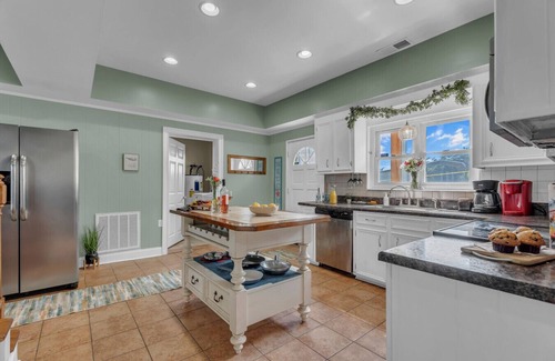 Comfort & Convenience: Washer & dryer, group dining table, towels, linens, hair dryer, hangers, step-free main level