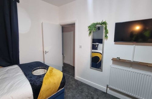 Discover comfort in our central Apartment. Relax in a cosy bed, recharge in a modern bathroom, and enjoy a fully-equipped kitchen. Netflix-ready Smart TV and high-speed Wi-Fi keep you entertained and connected. Free parking nearby. Dive into Birmingham's vibrant scene, from dining to shopping. Book now for an unforgettable stay!