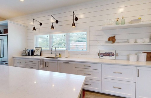 Entertainer’s Dream – Fully equipped kitchen with stainless steel appliances, oversized island, drip coffee maker, and Keurig. Dining table for 8 plus 4 barstools at the island.