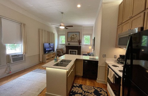 750 sf high ceiling one bedroom unit remodeled with new bathroom, queen size bed, refinishing hardwood floors, provided 55’ smart TV, all appliances, washer and dryer, working desk. Walkable to all popular restaurants, grocery stores, convention center, riverwalk…