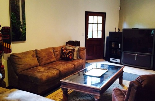 This suite guest apartment is offered as a separate private living area. The apartment is attached to the main house on the lower level. There is a king size memory foam bed in the master bedroom. When you arrive, you will be greeted by a natural stone staircase leading to your private patio with three entrance doors to your spacious vacation rental.