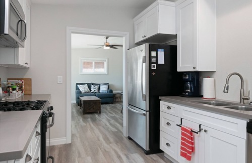 Welcome home to Ventura's "After Dune Delight" a beautifully remodeled 3 bedroom plus 1 bathroom home located in an incredibly desirable spot! Right across the street from Marina Park AND the Beach!! Upon entering the home you will find the living room with two plush couches and a flat screen TV, and a dinner table that seats 4. The living room offers exquisite views of the wonderfully groomed Marina Park and the beach. To the right is the beautifully remodeled kitchen, with stainless steel appliances, and access to the back yard. To the rear of the home you will find the bedrooms. The master bedroom features a King sized bed, the second bedroom features a Queen sized bed, and the third bedroom features a Trundle Bed with two twin mattresses. This entire home has been remodeled and is like NEW!!! The back yard is incredibly spacious, with plenty of patio furniture, a BBQ, and a fire-pit to enjoy the beautiful beach weather and lifestyle! There is an outdoor shower in the back yard, as well as access to the private laundry room.
