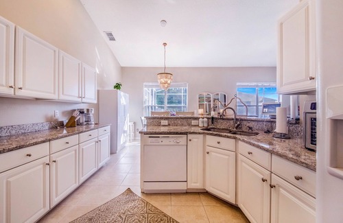 Four bedroom, two bathroom, one level, single-family home in a golf community. High ceilings and comfy sectional with tons of seats for relaxing and eating. Private pool, large primary bedroom. King beds in three rooms and a bunk room with full beds that sleeps 4 comfortably. The home sleeps 10 people. Full kitchen with all the supplies to cook, including a Mickey Mouse waffle maker and air fryer. Smartly updated and fully furnished. Large TVs in every bedroom. Wonderful out door area with large table for games and socializing. Fire table and outdoor sofa. Property located in Davenport minutes from Walt Disney World.