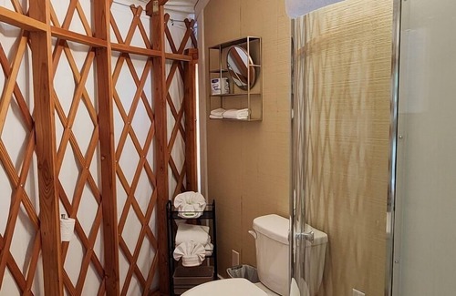 Imagine spending your days hiking scenic trails, then returning to your private oasis to gaze up at the stars through the dome skylight. With all the amenities of home, this yurt provides the perfect balance of rustic charm and modern convenience, making it an ideal escape for couples or solo adventurers seeking a unique glamping experience.