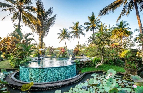 The villa is surrounded by lush tropical gardens, providing guests with stunning views of the surrounding rice terraces and mountains. Its open-plan living area is designed to promote a sense of spaciousness, with a fully equipped kitchen, a large dining area, and a cozy lounge perfect for both relaxation and entertainment.