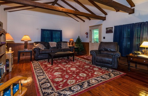 Remember to pack your swimsuits so you can take a dip in the bubbling hot tub out back. When bedtime comes, a pretty quilt on the queen-size bed invites snuggling as you prepare to head off to dreamland.
