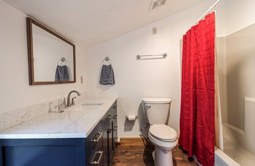 Downstairs Bathroom: Single vanity, shower and tub combination