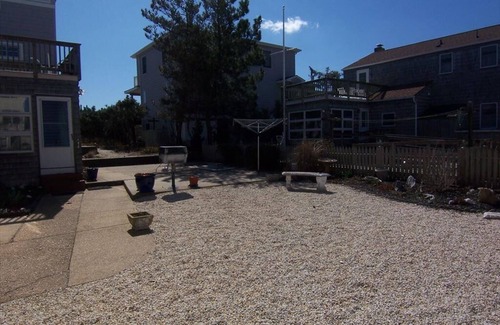 First floor of an ocean block duplex just one house off the beach. Outside shower is shared with 2nd floor. Beach chairs and umbrella provided along with 6 beach badges but not guaranteed. No pets! NO SMOKING IN HOUSE EVER LOSS OF SECURITY! This is the first floor of an ocean block duplex, just one house from ocean. Patio furniture includes dining for 6 with umbrella. Sun porch has split air unit along with a tv. Outside shower is shared with the second floor. 6 beach chairs provided.