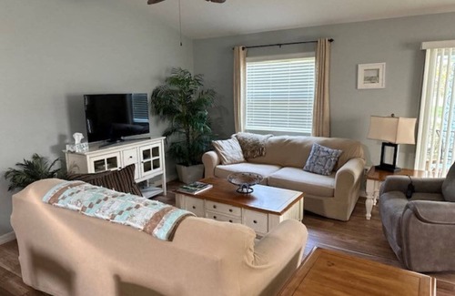 2 bedroom / 2 bath Patio Villa in The Villages! Home is located between Lake Sumter and Brownwood which gives you the choice of two squares to choose from! Complimentary golf cart is included for your enjoyment. Open floor plan. MBR includes private full bath w/ shower. The couches are cozy and a very comfortable place for additional guests should your party be up to 6 people. You will enjoy the central location of this home and Great property! Please note that the owner does store a vehicle in the garage along with the cart. Parking is only available in the driveway and in front of the home. (credit card processing fee is non-refundable should guest cancel)