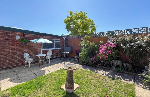 Wet Room: Shower, Toilet, Grab Rail. Gas central heating, electricity, bed linen, towels and Wi-Fi included. Garage with washing machine. Garden with sitting-out area and garden furniture. Private parking for 1 car. No smoking.. Nestled in the tranquil coastal town of Bognor Regis, this charming two-bedroom holiday bungalow offers a perfect retreat for a family or a small group of friends seeking relaxation and exploration. Situated just a short walk from the shimmering shores of the English Channel, the property provides a cosy and inviting atmosphere, ideal for unwinding after a day of seaside adventures.