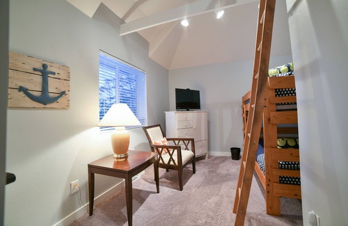 One Bedroom has a Queen size bed and the other bedroom has a bunk bed (Full over a full) and also a loft area with a futon. Please note: Garage not for occupant use.