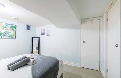This spacious 2-bedroom basement apartment is located in the heart of Trinity Bellwoods. Trinity Bellwoods is one of Toronto's most lively areas, with countless restaurants, bars, shops and parks within walking distance. The apartment is pet-friendly and can host up to 6 guests at a time with its 2 separate bedrooms (with Queen sized beds) and pull out sofa bed in the living room. There's even a shared fenced in back patio area.