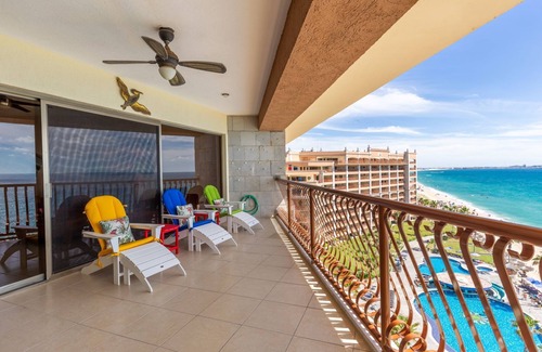Two bedroom condo at the Sonoran Sun Resort on Sandy Beach. Sleeps 6. Located on the 9th floor. Master bedroom with king bed and master bathroom. Main full bath. 2nd bedroom has a queen size bed. Love Sac couch in living room that converts to two single beds or one queen bed. Fully stocked kitchen. Washer and Dyer. Balcony overlooking the Sea of Cortez