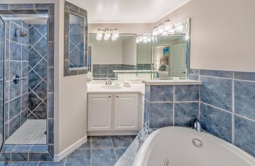 You will love the spacious accommodations that have plenty of room for the whole family. This 2-bedroom / 2 bathroom unit features a fully equipped kitchen, a washer/dryer, free Wi-Fi access and a furnished balcony. The primary bedroom features a king size bed with an ensuite bathroom. The primary bath has vanities, a large soaking tub, and a walk-in shower. The guest bedroom features a king size bed. There is also a sleeper sofa in the living room. The guest bath features a combination shower/tub and a single vanity. The full kitchen comes with stainless steel appliances and granite countertops. It has everything you would need to cook a home-cooked meal in. The unit also features a washer and dryer