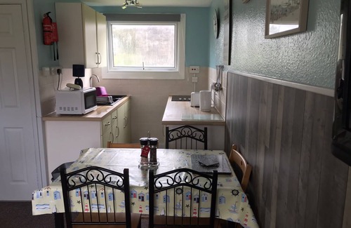 Bed linen is provided and the beds made for you on arrival, 2 tea towels,oven gloves and a bath mat are also provided. You will need to bring your own towels as none are provided. There are electric heaters in the bedrooms and the living room. Electricity is provided via a coin meter which accepts £1 coins. To the front of the chalet is a picnic bench and a grass area which enjoys a sunny aspect during the afternoon and into the early evening (weather permitting). There is parking close to the chalet. People with restricted mobility should be aware there are steps to access the chalet.