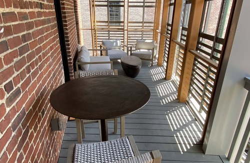 Vantage Art Flats contains 9 unique suites, each to include curated art selections, designer furniture, and high quality finishes. This suite boasts 2 bedrooms with queen beds, a spacious bathroom, a full kitchen, washer/dryer, and dedicated work space. Units come standard with coffee maker and coffee, common toiletries, linens and snacks. Wifi and smart televisions are on site with YouTube TV subscriptions provided. Restaurants, breweries, and entertainment are located just outside this space, all within an easy walk.