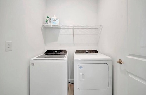 This new home has two spacious bedrooms with queen beds and ensuite bathrooms and closets. It also has a flex room/den, an ideal reading area. Full home AC, high-speed internet with WIFI, two flat screen TVs, washer/dryer, modern kitchen with island and complete sets of cutlery, plates, glasses, pots, pans and accessories.
