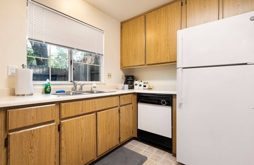Relax in our farmhouse-style townhome! Tastefully decorated so rustic meets chic, with comfort in mind! We are located right next to the community pool, which you have full access to and is hardly ever busy. For our grill masters, kick back in our fenced-in backyard and prepare a meal on our BBQ. Enjoy a stroll through the neighborhood, or check out Downtown Chico (approx. a 5 minute drive)!