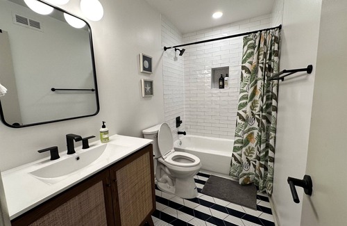 •Full bath with shower tub, shampoo, conditioner, and hair dryer
