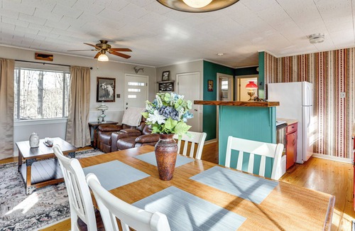 Get back to nature with a stay at this peaceful 2-bedroom, 1-bath Eva vacation rental! Perfect for small families or groups of friends, the cabin has an open-concept living area, a well-stocked kitchen, and a private outdoor space to relax in after your well-spent days. Hike through Nathan Bedford Forrest State Park, tee off at Magic Valley Golf Club, or visit Eva Beach Recreation Area and cast a line in Kentucky Lake. It's up to you!