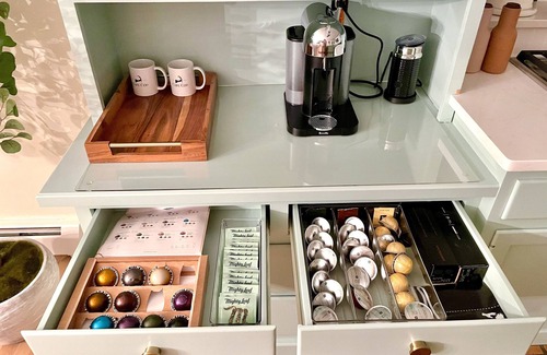 The kitchen has everything you need. The washer/dryer is conveniently located on the main floor. There are amenities such as very fast high speed Internet and a Nespresso machine.
