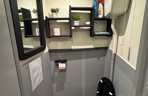 This 1-bedroom, 1-bathroom rental features air conditioning and a desk. Connect to the free WiFi, or get cozy in front of the Smart TV. Bathroom amenities include towels, toilet paper, and soap. The kitchen is equipped with an oven, a stovetop, and a refrigerator, as well as an electric kettle, a microwave, and cookware. And thanks to the washer and dryer, you'll even be able to travel light. Other amenities include bed sheets, an ironing board, heating, and a desk chair.