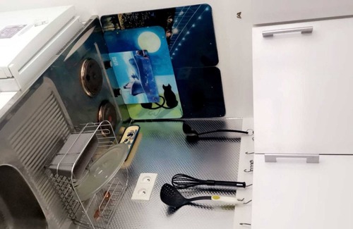 A living room and a desk are featured at this 1-bedroom, 1-bathroom rental. Enjoy the free WiFi and TV. Bathroom amenities include towels and toilet paper. The kitchen is equipped with a stovetop and a refrigerator, as well as an electric kettle, a microwave, and cookware. And you can even pack a bit lighter because there's a washer and dryer. Other amenities include bed sheets, heating, a desk chair, and a dining table.
