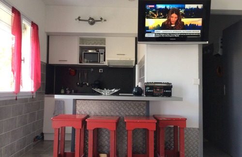 Apartment 2 rooms with terrace, on the 1st and last floor with 20m of the sand, view sea, Grand F2 of a small residence in peace, free parking, housing and equipments refurbished in May 2016, a big room (mattress Bultex) A main room with a click clac (mattress Bultex) +1 extra bed, a central island, television and wifi