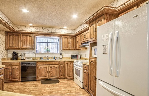 Our house has four bedrooms and two and half bathrooms. The master bedroom and two other bedrooms are located on the main floor. The fourth bedroom, with two queen beds, tv, microwave, mini fridge, table and chairs, and half bath, is located on the bottom floor with access only through a secure keypad entry on lakeside. Our home sleeps 10 people. The main floor feels spacious with an open living room area and a large table for eight. We have an additional table with four more chairs in the Arkansas Room. Our glass enclosed porch allows you to enjoy the beauty of the lake throughout the year. Our deck is large and has two tables which seat eight people as you relax with your morning coffee or a beverage of your choice in the evenings. Our sunrises and sunsets are incredible. The kitchen has everything you need to cook a dinner for a large group or a small intimate one. Our house has four TVs for everyone to enjoy time together with two large sofas or time apart when desired. We have 2400 square feet and a .45-Acre lakefront lot with 97 feet of seawall.