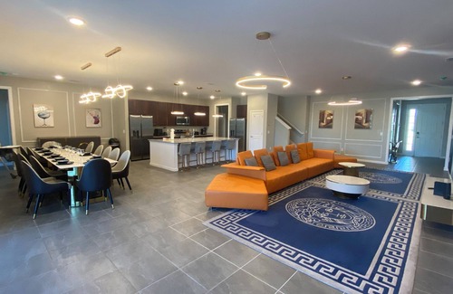 These are two adjacent villas with a total of 30 bedrooms. Luxury house up to 60 people with private pool, hot tub & clubhouse included. Located in the heart of Kissimmee in the Veranda Palms complex. Near to everything that you and your family will need to have an amazing vacation such as Disney, Supermarket, Pharmacy, Restaurant, Outlets and more. BBQ Grill to your reservation.