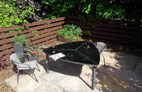 Outside to the rear of the property is a self contained private raised garden with outdoor table and chairs and a gas BBQ.