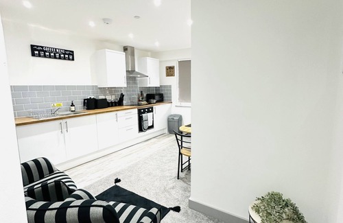 202 Grosvenor House is the epitome of a modern and chic city centre getaway in the heart of Wakefield. The apartment was only built in 2023 and has been carefully designed to meet our guests high standards and to keep up with modern trends. Elegant soft furnishings have been added to give the home an extra touch of comfort. The Apartment is complete with a living area; incorporating an open plan kitchen/ diner; bathroom facilities, gas, water, electric, Wifi, Smart TV, with access to paid parking only a few minutes walk from the property. (Please note there are 3 flights of stairs up to the property.)