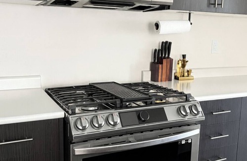 Built in 2024, this 3-bedroom, 1.5-bath townhouse offers bright, modern interiors and comfortable living spaces throughout. Each bedroom is furnished with a queen bed, making it ideal for families or groups of up to six guests. The main floor features a cozy living area with a stylish 3-piece sofa set and a Smart TV, alongside a dining area with a table for four. The fully equipped kitchen includes a fridge, stove, microwave, coffee maker, toaster, cookware, and pantry essentials for convenient meal prep. Upstairs, the full bathroom features a tub and shower combination, while a half-bath is conveniently located on the main floor for added convenience. Additional amenities include in-unit laundry, central heating and air conditioning, and access to a private but currently unfenced backyard—great for enjoying some fresh air. With its clean finishes and functional layout, this home provides a fresh and welcoming space for your stay.