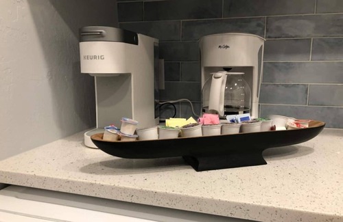 Kitchen – Each unit includes a fully equipped kitchen with a refrigerator, dishwasher, range/oven, and microwave. A washer and dryer are also provided under the counters for your free use. Silverware, cutlery, dishes, glasses, and basic cookware are also included. Drip and Keurig coffee makers are also included to start your morning off with that cup of coffee as you sit outside and listen to the sounds of the nearby ocean waves.