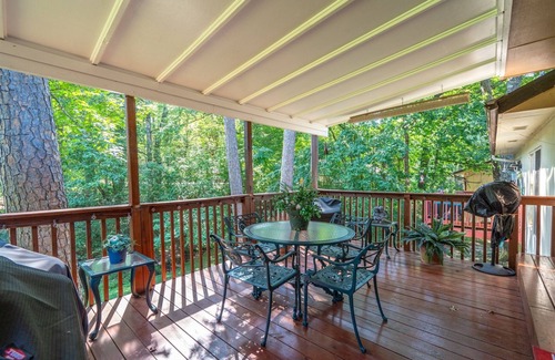WIFI and HDTV. A nicely furnished one level town home with furnished front porch and covered back deck. Enjoy the home in a peaceful wooded setting. The kitchen is well stocked with modern appliances. There is a dining area for 4. The living room has very comfortable furnishing with HDTV. The master bedroom has a queen bed and there is a master bath with tub and shower. The guest bedroom has a queen bed and the guest bathroom has a tub and shower. The home is conveniently located near the Highway 7 West Gate, Lake DeSoto, DeSoto Golf Club, family recreation area and local restaurants.